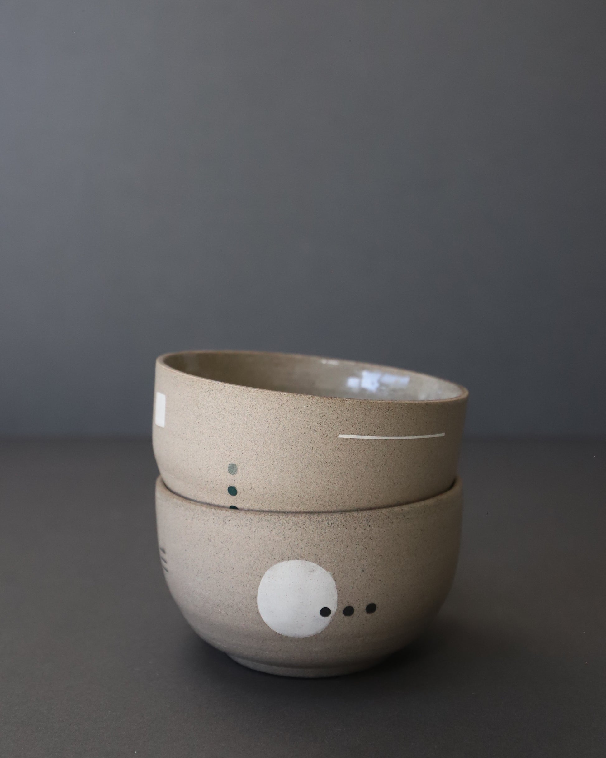 A stoneware bowl with a black and white geometric design. Perfect for breakfast, deserts, snacks or even trinkets.