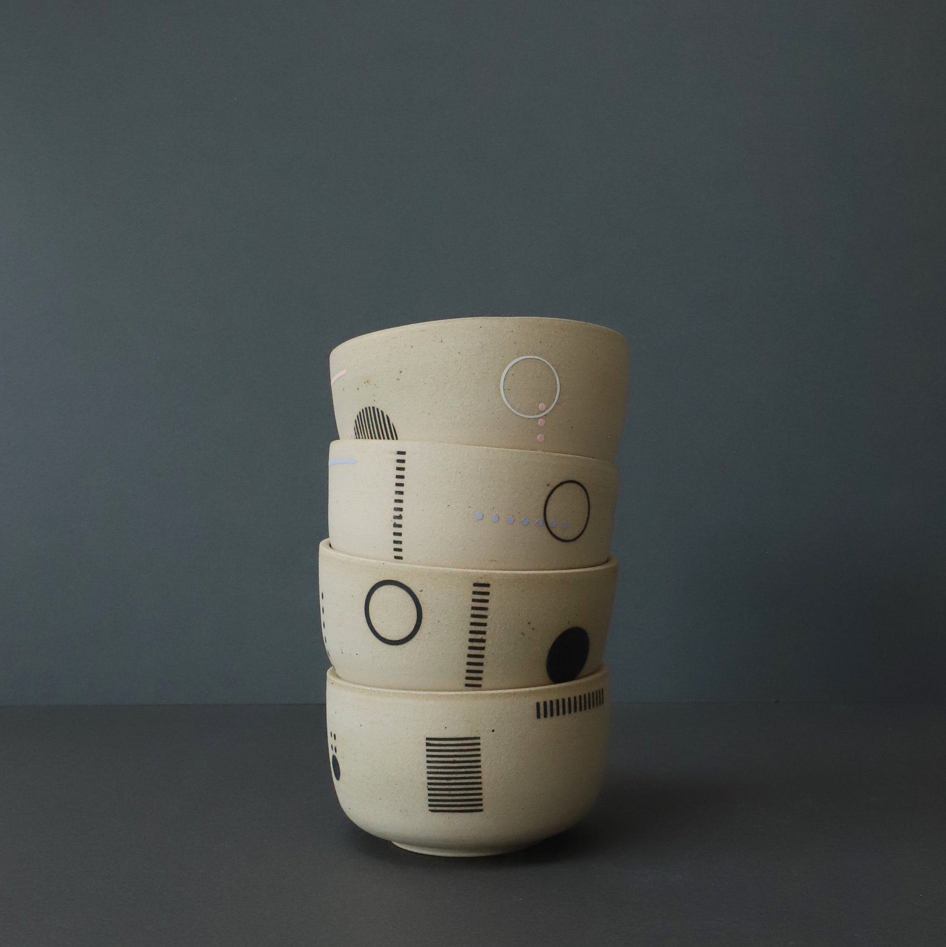A stoneware bowl with geometric design. Perfect for breakfast, deserts, snacks or even trinkets.